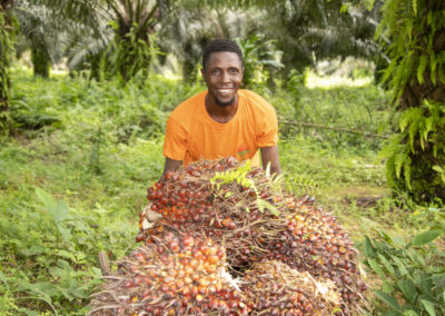 L’huile de palme est l’huile végétale la plus utilisée au monde. Elle est produite à partir de la pulpe des fruits du palmier à huile, arbre dont la culture est la plus économe en termes d’occupation des sols et la plus durable en particulier grâce à son mode de production circulaire.