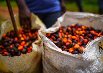 Ses fruits, très riches en huile, grandissent en grappes, aussi appelées « régimes », et poussent à la cime de l’arbre. L’huile de palme est extraite de la pulpe des fruits par simple pression à chaud, sans solvants ni additifs chimiques.