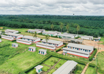 En parallèle des logements et des soins médicaux, nous nous assurons que des infrastructures sociales telles que des places des marchés, terrains de sport, clubs, écoles soient construits au sein des villages des plantations.